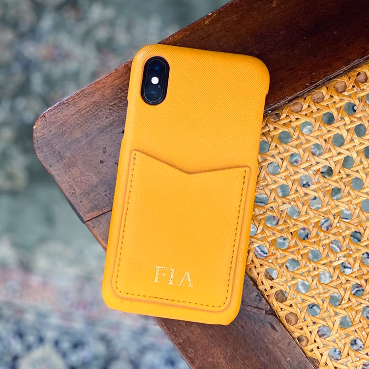En mobilcover med kortholder er fin og praktisk på samme tid. Denne pris inkluderer både et mobilcover, kortholder og valgfri gravering. Et tidløst og stilrent look.